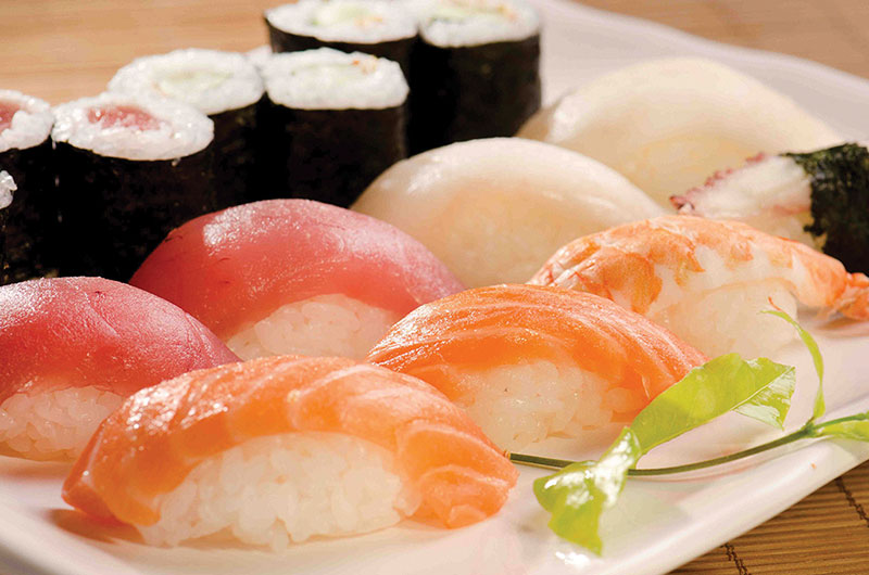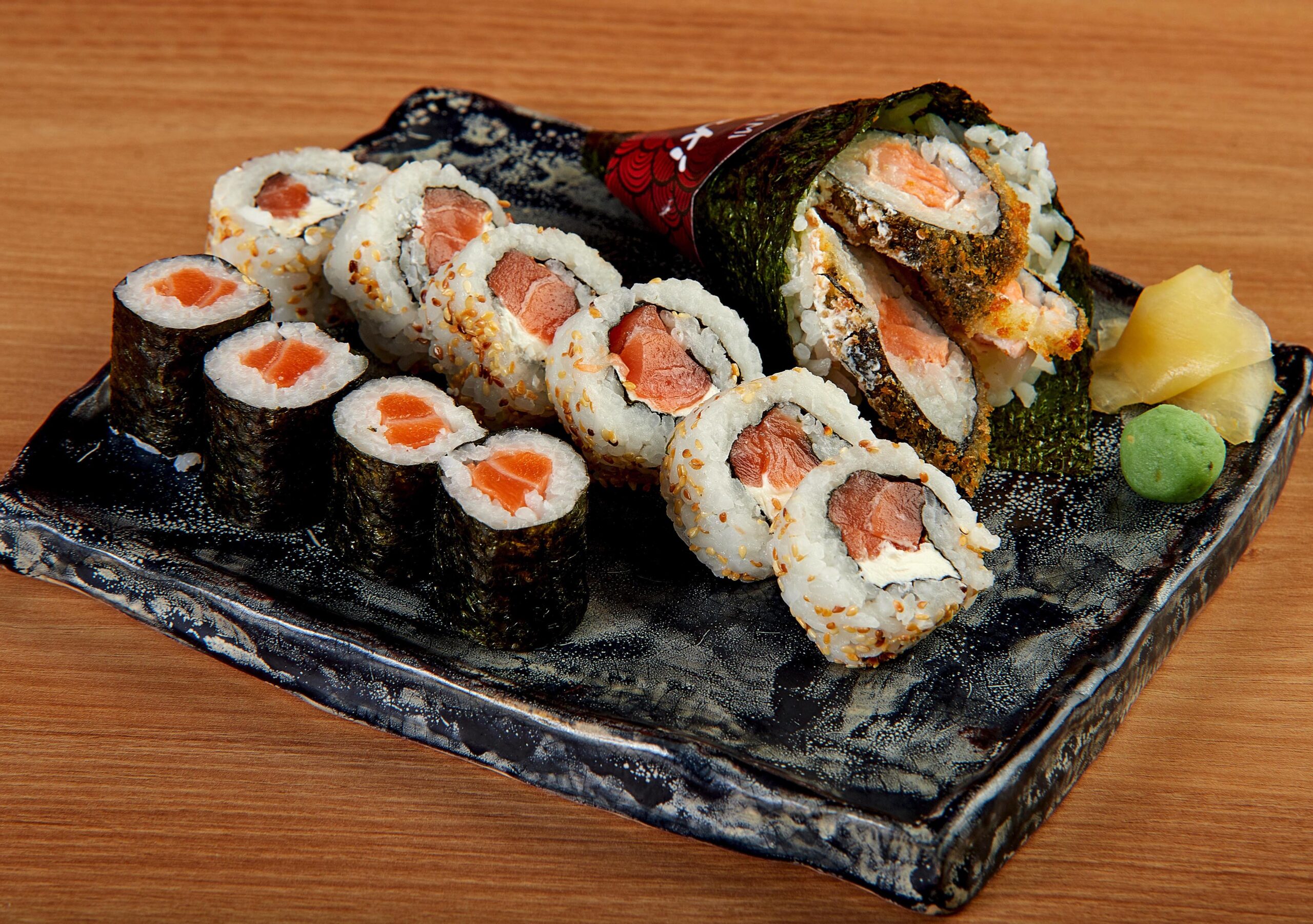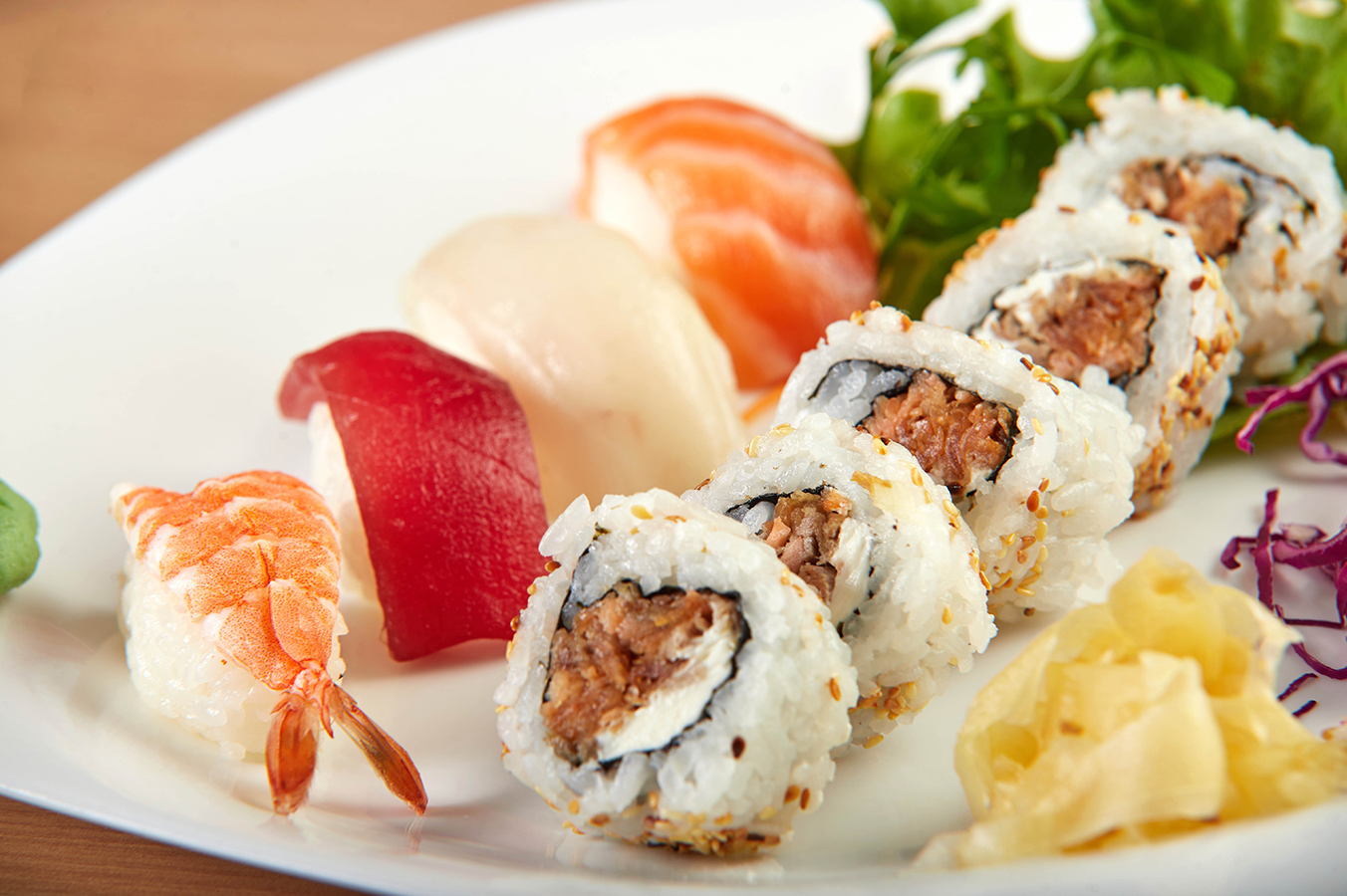 8 sushi, 6 sashimi, 6 uramaki e 6 hot