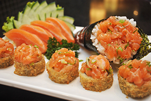 4 sashimi, 5 hot e 1 temaki salmão cheese